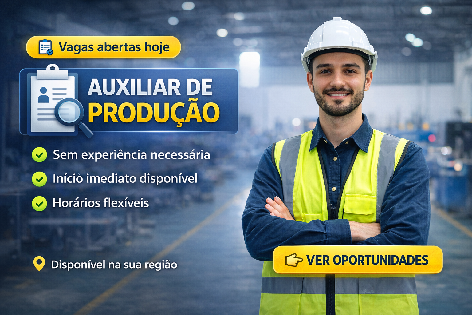 A vaga de auxiliar de produção oferece entrada rápida, rotina organizada, aprendizado constante e oportunidade real para quem busca estabilidade profissional.